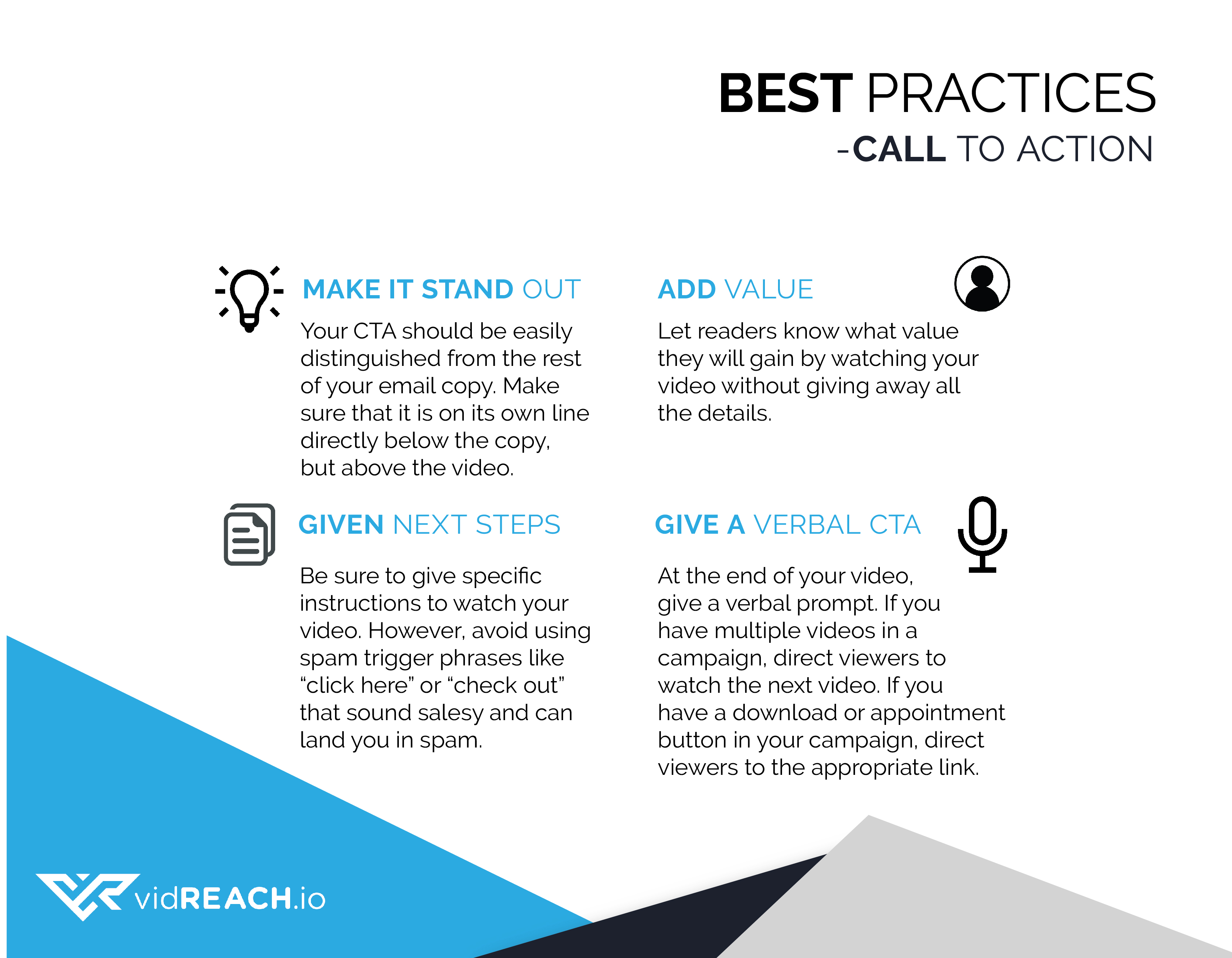 The purpose of a Call to Action button is to lead the recipient of your campaign down your intended path. Below provides an outline for ensuring your CTAs are as effective as possible.